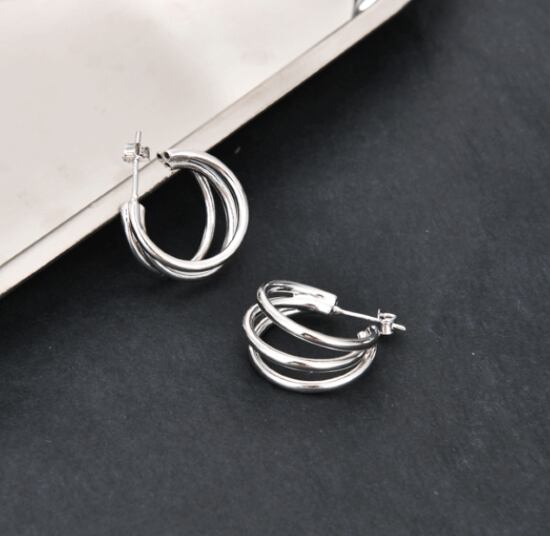 フープピアス レディース アクセサリー ピアス 三連 シルバー メタル 銀 シンプル スタイリッシュ きれいめ エレガント カジュアル おしゃれ ファッション オフィス お呼ばれ パーティー ピアス