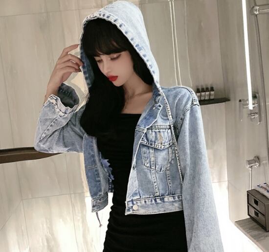 デニムジャケット レディース アウター 羽織 ジャケット デニム 長袖ジャケット フード付き ショート丈 クロップド丈 フロントボタン カジュアル お出かけ おしゃれ ブルー 青 デニムジャケット