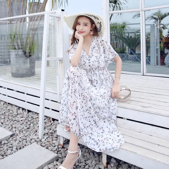 リゾートワンピース レディース ワンピース 半袖ワンピース Vネック ハイウエスト 花柄 フラワー フローラル ロングワンピース カジュアル お出かけ おしゃれ きれいめ シフォンワンピース 女性