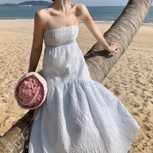 リゾートワンピース レディース ワンピース ロングワンピース ティアードスカート 細ストラップ しわ加工 バックシャン 背中見せ チューブトップ きれいめ エレガント カジュアル おしゃれ 女性