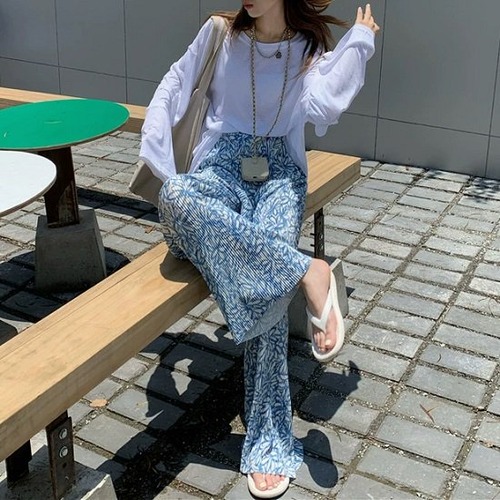 ワイドパンツ 花柄 プリーツ ボタニカル柄 リーフ柄 フレアパンツ 楽ちん 大きいサイズ ロングパンツ ボトムス 夏 涼しげ レディース フラワープリント ロング丈 ワイドパンツ 花柄 プリーツ