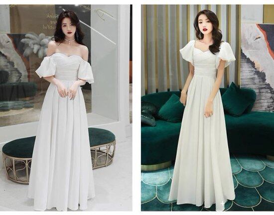 結婚式ドレス レディース オフショルダー 2way Aライン 演奏会 発表会 ウェディングドレス パーティードレス イブニングドレス 選べる丈 ミディアム丈 ミモレ丈 ロング丈 エレガント 華やか