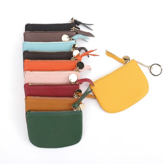 コインケース レディース コインパース 小銭入れ ミニウォレット ファスナーポーチ マルチポーチ キーリング付き シンプル 無地 牛革 レザー コンパクト 小さめ カード入れ カードスロット ミニ