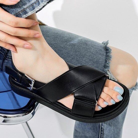 サンダル 厚底 夏新作 レザー ミッドヒール 歩きやすい 走れる 疲れにくい 厚底サンダル 旅 リゾート ビーチ レジャー 無地 シンプル 夏靴 アウトドアサンダル 通気性 クロスベルト カジュアル