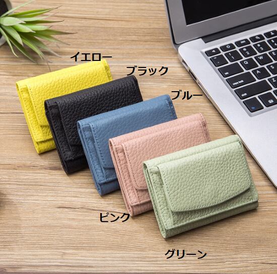 折りたたみ財布 レディース 三つ折り財布 ミニ財布 ミニウォレット コンパクト 財布 ウォレット コインケース コイン収納 シンプル 無地 手のひらサイズ ミニ財布 牛革 レザー 上品 エレガント