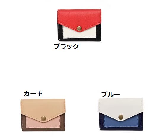 折りたたみ財布 レディース 財布 三つ折り財布 ウォレット バイカラー 配色デザイン カード収納 カードスロット カジュアル お出かけ おしゃれ 牛革 レザー コンパクトウォレット 小さめ 封筒型
