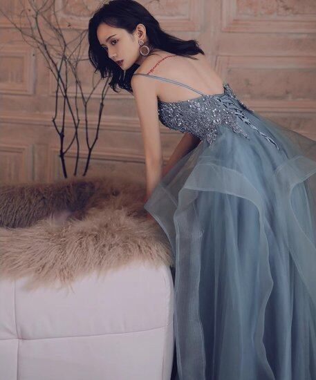 演奏会ドレス レディース 結婚式ドレス Vネック チュールレース ロング丈 キャミソールドレス パーティードレス カラードレス イブニングドレス 披露宴 ステージ衣装 エレガント 華やか ブルー