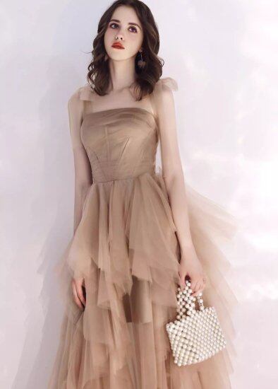 演奏会ドレス レディース 結婚式ドレス ノースリーブ チューブトップ チュールレース ティアードスカート パーティードレス イブニングドレス 発表会 披露宴 エレガント ステージ衣装 シャンパン