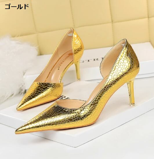 パーティーシューズ レディース パンプス 靴 シューズ メタリック パテントレザー ポインテッドトゥ きれいめ 美脚 脚長 エレガント スティレットヒール ヒール オフィス お呼ばれ フォーマル 女性