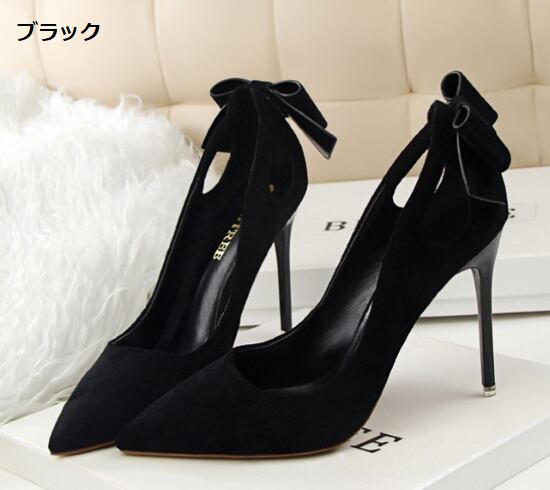 パーティーシューズ レディース パンプス 靴 シューズ リボンモチーフ 可愛い ハイヒール ポインテッドトゥ スティレットヒール きれいめ エレガント 無地 スエード フォーマル お呼ばれ 美脚