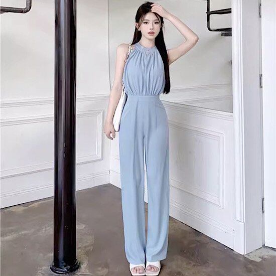 結婚式ドレス ホルターネック 無地 シンプル ノースリーブ ハイウエスト 発表会 演奏会 レディース 結婚式 ステージ衣装 エレガント パンツドレス カラードレス 華奢見え スリム