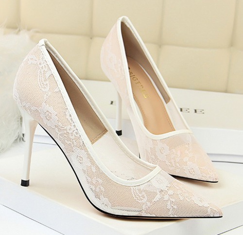 パーティーシューズ レディース パンプス 靴 シューズ シースルー メッシュ レース ポインテッドトゥ ハイヒール ピンヒール きれいめ エレガント フォーマル お呼ばれ 美脚 脚長 女性 パンプス