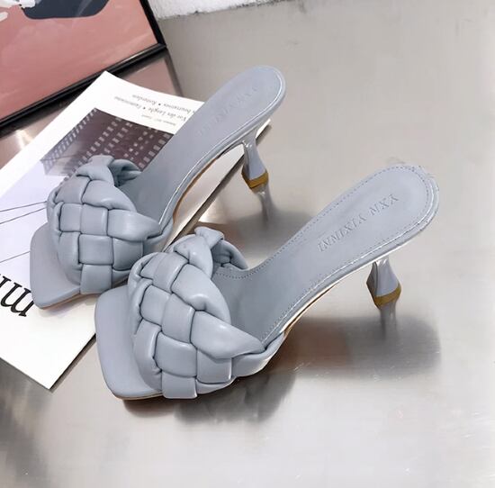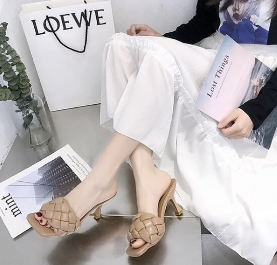 サンダル レディース 靴 シューズ ミュール オープントゥ スクエアトゥ 編み込みデザイン ヒール スティレットヒール カジュアル お出かけ おしゃれ ファッションサンダル 美脚 脚長 女性 シンプル