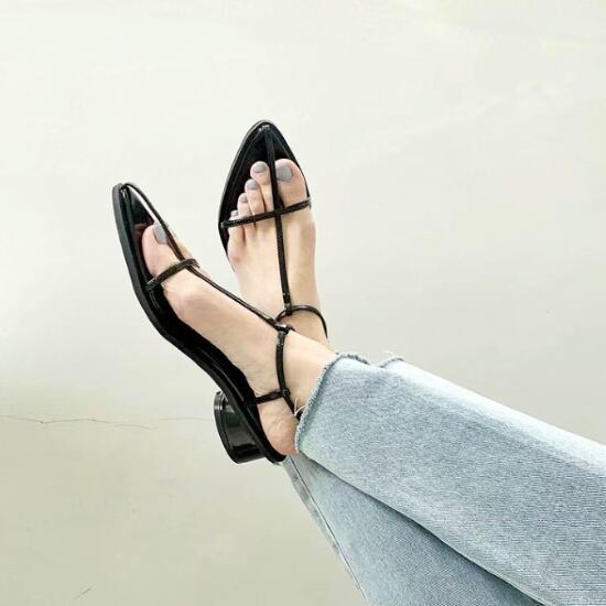 サンダル レディース 靴 シューズ 細ストラップ ポインテッドトゥ ローヒール 太ヒール カジュアル お出かけ おしゃれ 春夏 履きやすい 歩きやすい 疲れにくい Tストラップサンダル ファッション
