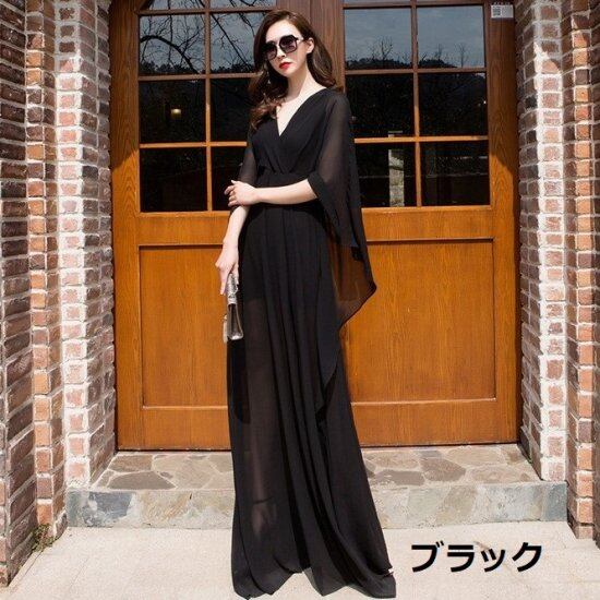 演奏会ドレス レディース ロングドレス シフォンドレス カシュクール 透け感 シースルー シアースリーブ トランペットスリーブ カラードレス 結婚式 ステージ衣装 パーティー 華やか エレガント