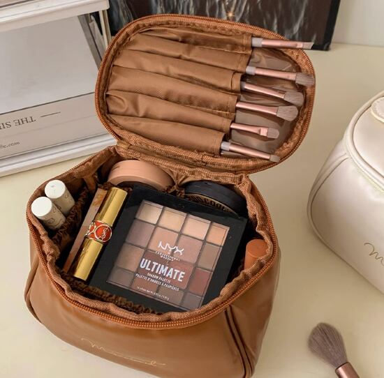 メイクポーチ レディース 化粧ポーチ コスメポーチ 持ち手付き 持ち歩き 大容量 旅行 お出かけ 可愛い おしゃれ メイク収納 コスメ収納 化粧品収納 シンプル 無地 エレガント 上品 大人っぽい