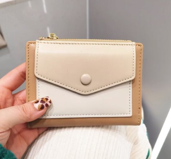 折りたたみ財布 レディース 財布 二つ折り財布 カードケース カード収納 カード入れ 小銭入れ コイン収納 コインパース コンパクトウォレット パステルカラー 配色デザイン ジッパーポケット 女性