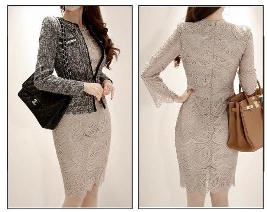 結婚式ドレス レディース レースワンピース 長袖 タイトワンピース ミディアム丈 ひざ丈 総レース スリム ラウンドネック 演奏会 二次会 披露宴 パーティードレス 華やか 上品 エレガント
