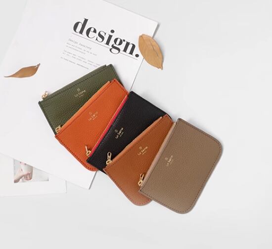 コインケース レディース 小銭入れ コイン収納 マルチポーチ ファスナーポーチ ジッパー カードケース カード入れ キーチェーン シンプル 無地 大人っぽい ポータブルポーチ 牛革 レザーポーチ