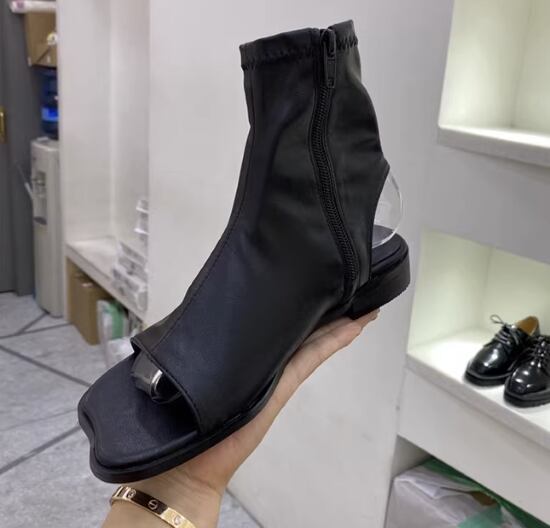 サマーブーツ レディース ブーツ 靴 シューズ ショートブーツ オープントゥ かかと開き ローヒール サイドジッパー シンプル 無地 カジュアル お出かけ おしゃれ 履きやすい 歩きやすい 疲れにくい