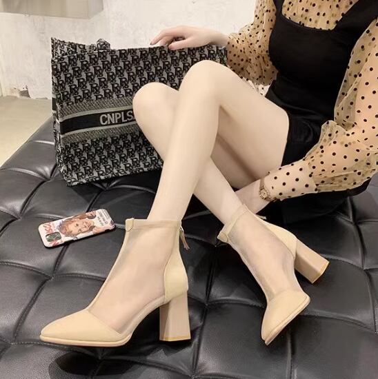 メッシュブーツ レディース ブーツ 靴 シューズ サマーブーツ ショートブーツ チャンキーヒール 太ヒール 通気性 メッシュ バックジッパー カジュアル きれいめ お出かけ おしゃれ セクシー 女性