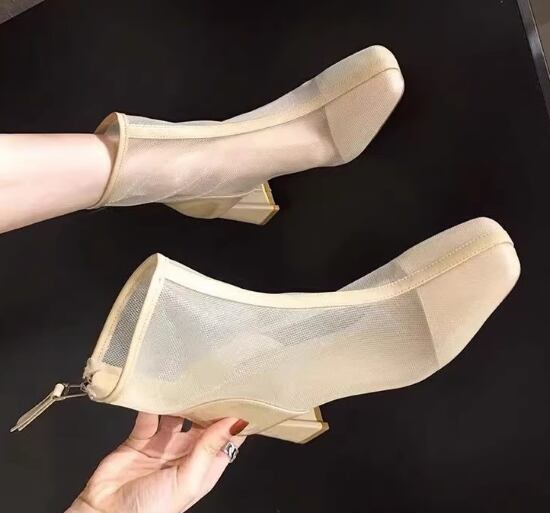 メッシュブーツ レディース ブーツ 靴 シューズ ショートブーツ スクエアトゥ バックジッパー メッシュ 通気性 太ヒール チャンキーヒール カジュアル お出かけ おしゃれ セクシー きれいめ 女性