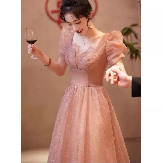 演奏会ドレス レディース ロングドレス パフスリーブ スクエアネック Vネック ハイウエスト マキシ丈 レース カラードレス 結婚式 謝恩会 ステージ衣装 パーティー イブニングドレス エレガント