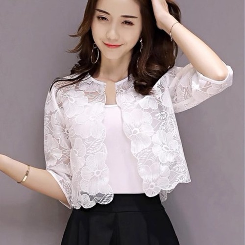 ショートカーディガン レディース ボレロ レース 花柄 五分袖 レースカーディガン 薄手 ショート丈 クロップド丈 日焼け対策 冷房対策 羽織り ショール きれいめ かわいい 上品 エレガント