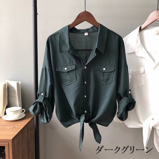 シャツ レディース 長袖 デザイン センス ニッチ 春 秋 夏 レトロ 香港風 タイアップ プチ ミッドスリーブ フレンチ ショート 日焼け止め トップ ブラウス レディースシャツ 長袖シャツ
