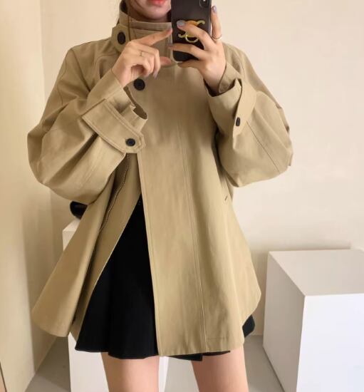 ウインドブレーカー レディース アウター 羽織 ショートコート 長袖 スタンドカラー ゆったり ルーズシルエット カジュアル お出かけ おしゃれ きれいめ ボタン シンプル 無地 ファッション 女性