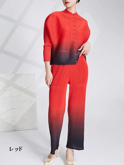 スーツ 大きめ レディーススーツ グラデーション ツーピーススーツ バックル カーディガン トップ オールマッチ ストレートパンツ ボトルネック グラデーション シンプル