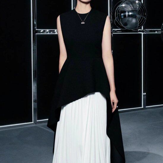 結婚式ドレス レディース バイカラー 異素材MIX プリーツスカート ノースリーブ ラウンドネック ワンピース ロング丈 マキシ丈 演奏会 二次会 ステージ衣装 パーティー イブニングドレス