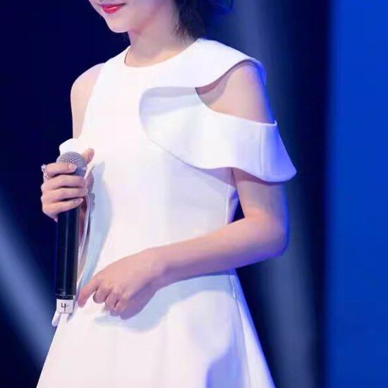 結婚式ドレス レディース アシンメトリー ノースリーブ Aラインワンピース フリル袖 ラウンドネック ミニ丈 ミディアム丈 演奏会 ステージ衣装 二次会 披露宴 パーティードレス エレガント
