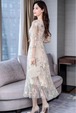 結婚式ドレス レディース レースワンピース 花柄 刺繍 七分袖 ラウンドネック 透け感 シースルー シアー ミモレ丈 ロング丈 演奏会 二次会 披露宴 謝恩会 パーティードレス 華やか エレガント