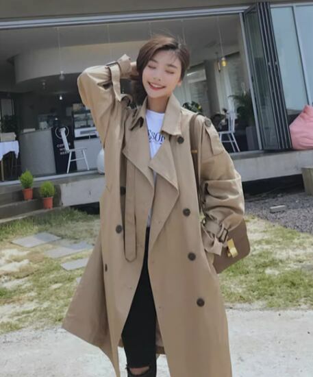 ミドル丈コート レディース アウター 羽織 トレンチコート 長袖 コート ウエストベルト ボタン コットン 綿 ダブルブレスト ボタン 襟あり スーツ襟 カジュアル お出かけ きれいめ 通勤 春秋