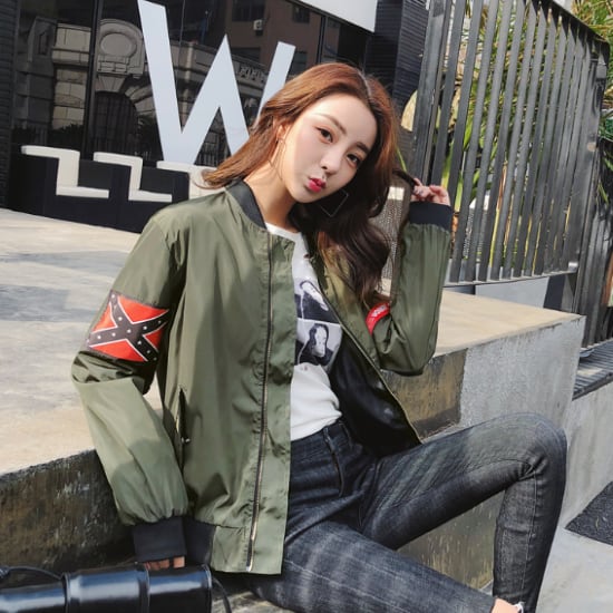 長袖ジャケット レディース アウター 羽織 ジャケット ブルゾン フロントジッパー ベースボールジャケット カジュアル お出かけ おしゃれ バックロゴ ゆったり ルーズ ストリート ファッション