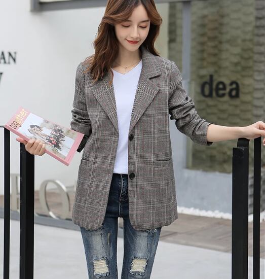 スーツジャケット レディース アウター 羽織 ジャケット テーラードジャケット 長袖ジャケット スーツ襟 チェック柄 グレンチェック 格子柄 フロントボタン シングルブレスト スタイリッシュ 女性