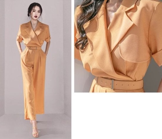 オールインワン レディース パンツドレス ジャンプスーツ ワイドパンツ テーラードカラー Vネック ハイウエスト ベルト付き サファリ 二次会 披露宴 パーティー オフィス エレガント パンツスーツ