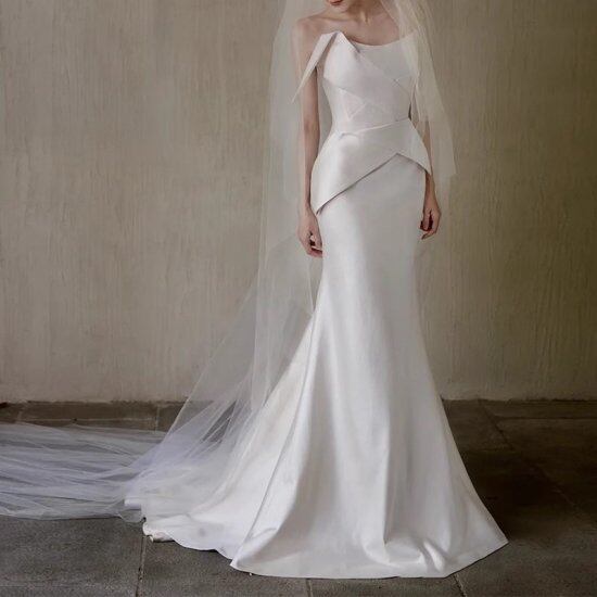 ウェディングドレス レディース ロングドレス フィッシュテール ベアトップ マーメイド ノースリーブ マキシ丈 シック モード 演奏会 イブニングドレス パーティードレス 上品 華やか エレガント