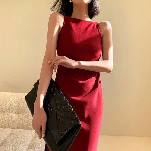 キャバドレス パーティー お呼ばれ ミモレ丈ドレス シンプル スリット タイト セクシー 無地 ノースリーブ キャバドレス パーティー お呼ばれ ミモレ丈ドレス シンプル スリット タイト セクシー