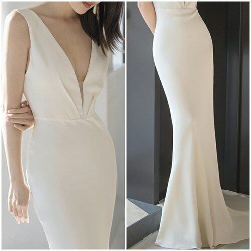 ウェディングドレス Vネック ノースリーブ マーメイド 白 シンプル 結婚式 二次会 パーティー エレガント 大きいサイズ ウェディングドレス Vネック ノースリーブ マーメイド 白 シンプル 結婚式