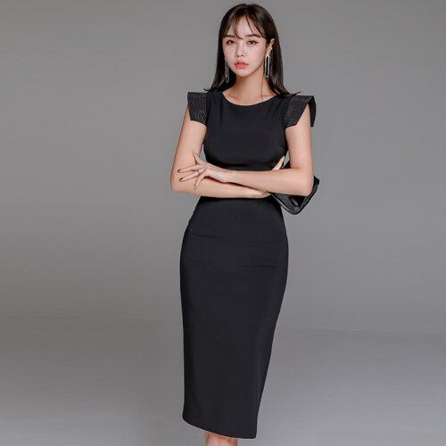 パーティードレス 結婚式 二次会 パーティー お呼ばれ ミモレ丈 黒 タイト ノースリーブ ワンピース パーティードレス 結婚式 二次会 パーティー お呼ばれ ミモレ丈 黒 タイト ノースリーブ