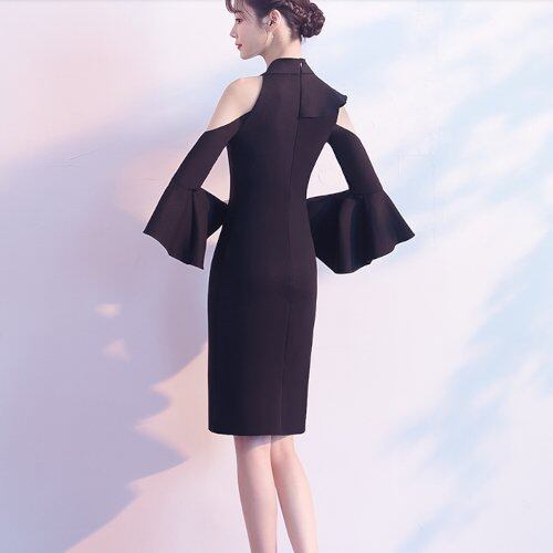 パーティードレス ミニ丈 ベルスリーブ 肩出し フリル ラッフル ワンピース 大きいサイズ タイトシルエット 無地 結婚式 二次会 発表会 パーティー お呼ばれ パーティードレス ミニ丈 ベルスリーブ