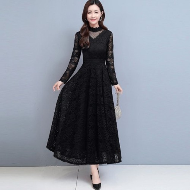 パーティードレス 結婚式 二次会 発表会 演奏会 お呼ばれ パーティー ロングドレス レース 長袖 シースルー 透け感 エレガント Aライン フレア 総レース 大きいサイズ パーティードレス 結婚式