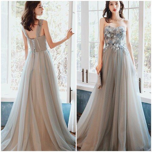 ウェディングドレス マキシ丈 結婚式 二次会 チューブトップ ベアトップ オフショルダー キャミソールドレス 3way シフォン 刺繍 花 レースアップ バックシャン 大きいサイズ ウェディングドレス