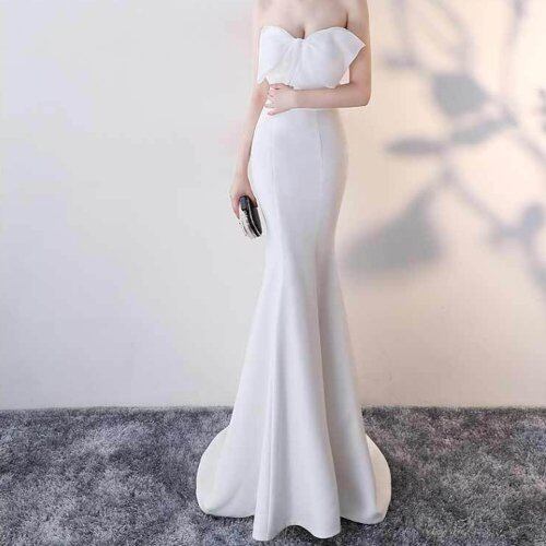 パーティードレス イブニングドレス 結婚式 二次会 発表会 演奏会 お呼ばれ パーティー マキシ丈 黒 マーメイド リボン ベアトップ チューブトップ 背中見せ タイト 大きいサイズ パーティードレス