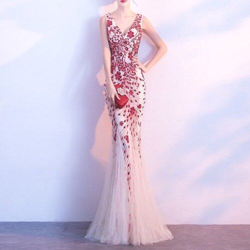 パーティードレス 結婚式 二次会 発表会 演奏会 お呼ばれ パーティー ノースリーブ マキシ丈 スパンコール チュール タイト Vネック 背中見せ バックシャン パーティードレス 結婚式 二次会