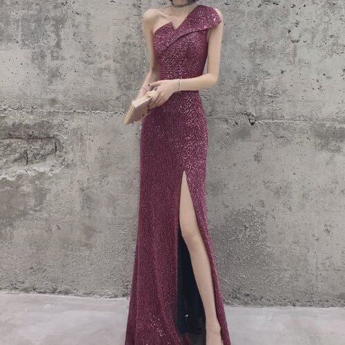 パーティードレス お呼ばれ 発表会 演奏会 結婚式 二次会 タイト マキシ丈ドレス 黒 スパンコール ワンショルダー アシンメトリー パーティードレス お呼ばれ 発表会 演奏会 結婚式 二次会 タイト