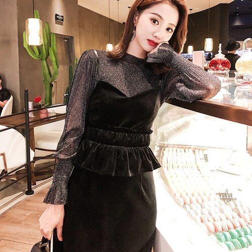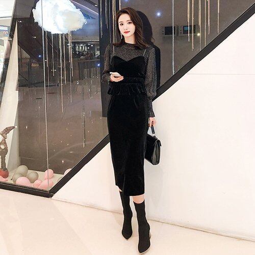 パーティードレス 結婚式 二次会 発表会 同窓会 謝恩会 シアー素材 ラメ シースルー ペプラム ミモレ丈 黒 大きいサイズ パーティードレス 結婚式 二次会 発表会 同窓会 謝恩会 シアー素材 ラメ