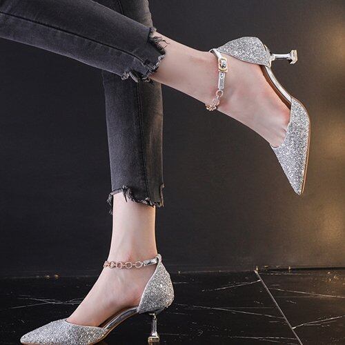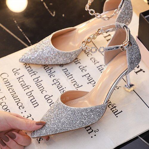 結婚式 パンプス ヒールパンプス アンクル ストラップ ラメ ポインテッドトゥ 二次会 パーティー 結婚式パンプス 結婚式用 大きいサイズ 結婚式 パンプス ヒールパンプス アンクル ストラップ ラメ